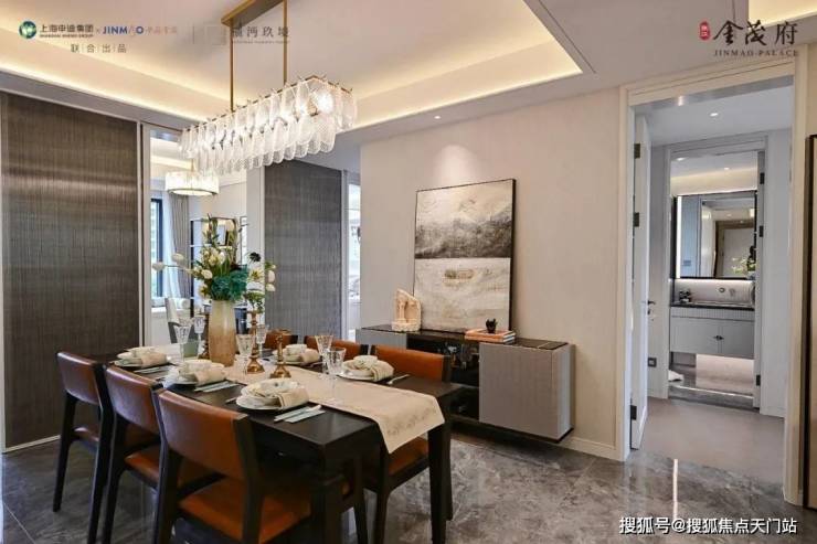 侧边可以做洗护功能区,放置洗衣机、烘干机、储藏柜收纳等。餐厅空间相当阔绰,可放置 四人桌或六人桌,尺度之大在600万级产品中非常难得一见。U型厨房带飘窗的设计,左侧预留了 双开门冰箱位置,让整个空间的利用率更高。交付标准相当奢豪华,配置 西门子的灶台、油烟机、洗碗机高配三件套,弗兰卡的水槽及抽拉式龙头,石英石台面,欧派定制柜柜体,部分金茂定制岩板的墙面等。双卫设计,避免早上洗漱的“排队”,充分体贴日常需求。
