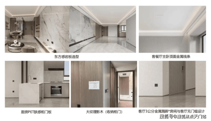 而在硬性标准之上,保利·海上瑧悦还充分融合了东方文化高定细节!比如说,客厅整面交付的大面积岩板背景墙均为东方定制款式,采用的是水墨丹青和徽州印象样式,配色风格凸显东方风雅;