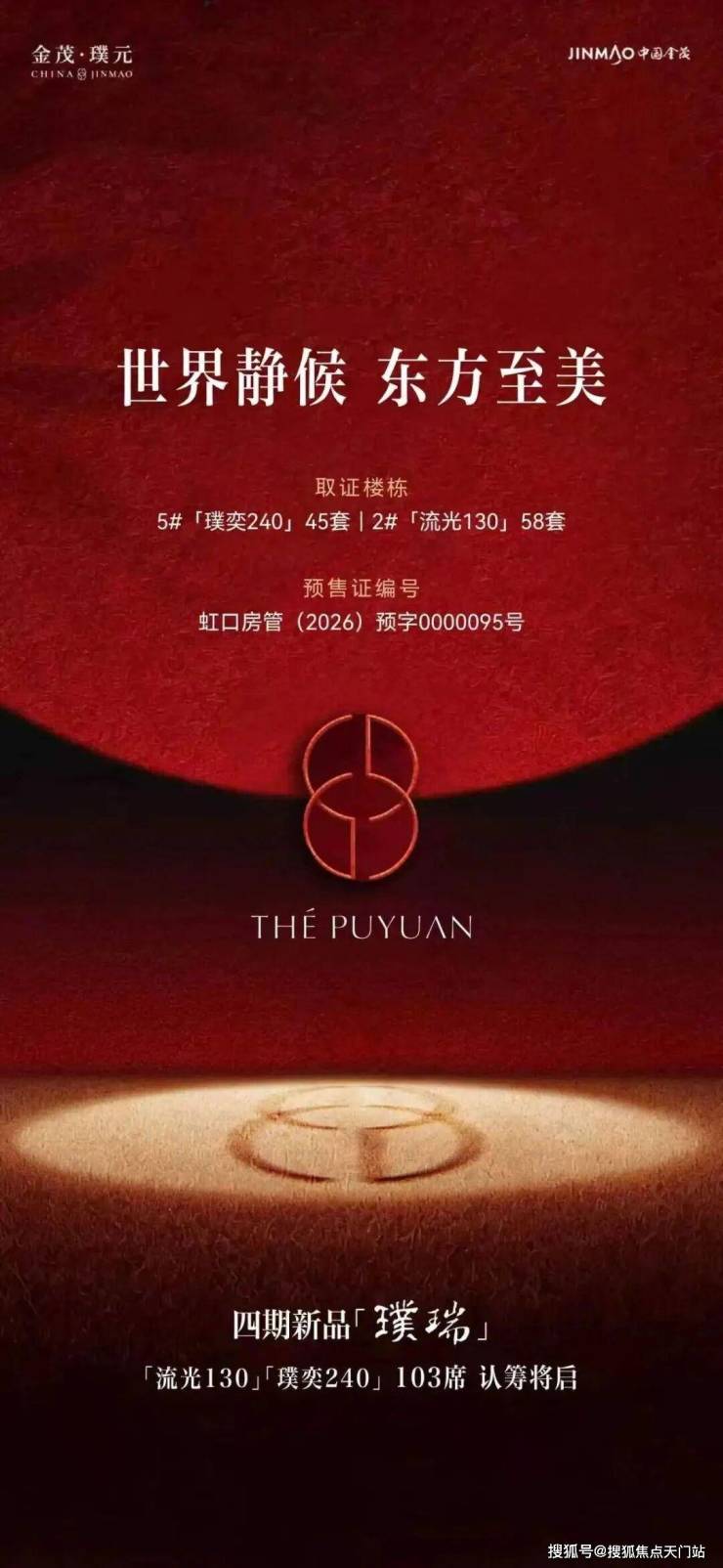 金茂31年 上海璞系壹号作品金茂璞元四批次已过会!房源103套!建面约130、240平3-4房! 还有少量128、170、200平3-4房户型!