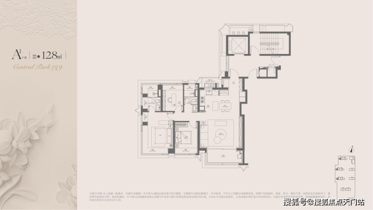 同样为两梯两户+独立电梯厅+双套房格局。边厅设计带来东、南双向约270°采光,俯瞰中央下沉庭院与大宁公园,视野极佳。