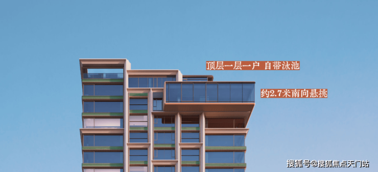 项目更创新打造 2套南向悬挑2米的“空中观景台”户型,可俯瞰大宁公园盛景;并规划 2套顶层带私人泳池的亿元级大平层,再度刷新顶层产品高度。