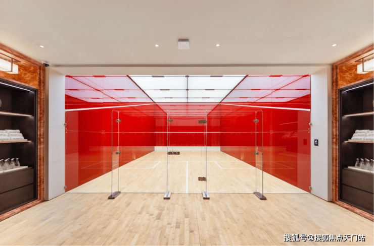 壁球馆用鲜亮的米兰红石材作为背景,营造非常时尚的运动风。