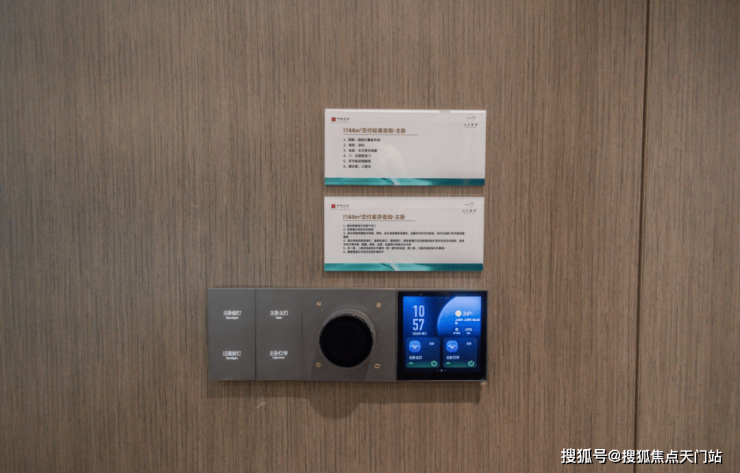 在客厅与主卧,分别设置的 智能语音中控,支持触摸/语音/多场景/多设备交互,可以联动空调、新风地暖,控制全屋照明等。