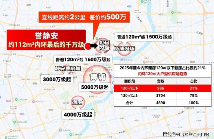 而虹口、杨浦内环,到传统市中心普遍超过3-5站,通勤效率不如这里,总价门槛却比誉静安高出约500万。