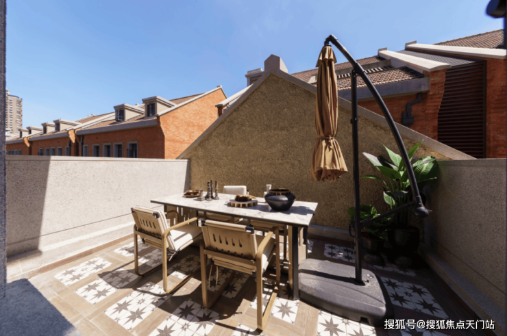 还带专属露台,在增加使用面积的同时更亲近自然,眼前就是花草树木的绿意和四季变换。