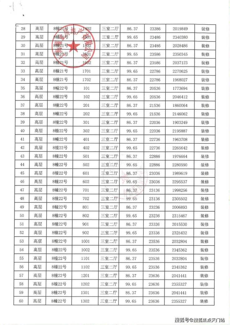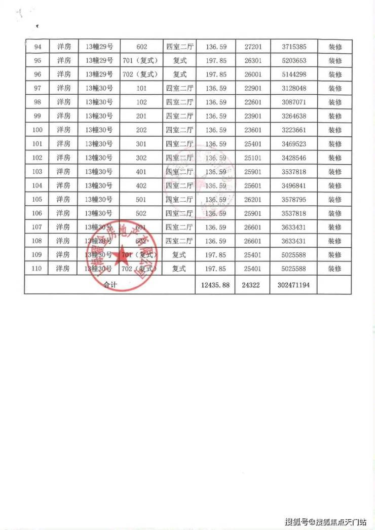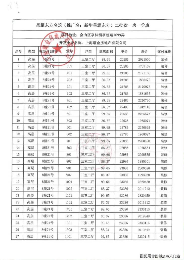 一房一价表: