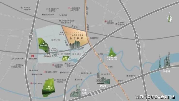 「品尊国际」位于普陀区铜川路58弄,项目东临岚皋路,南侧为铜川路。属于真如城市副中心的东门户,三期位于二期西北面,府村路上。