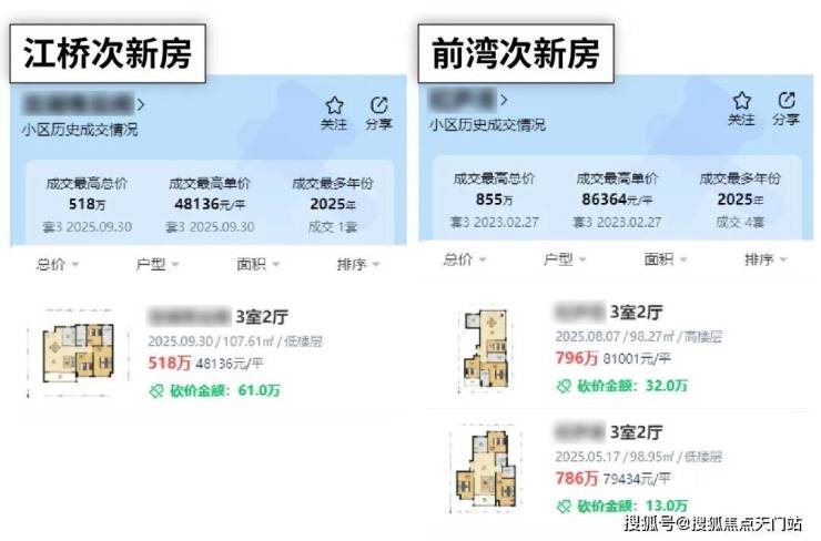 但现在再看,江桥次新二手房成交价只有4.8万/㎡,反观前湾次新二手房还能稳在8万/㎡!