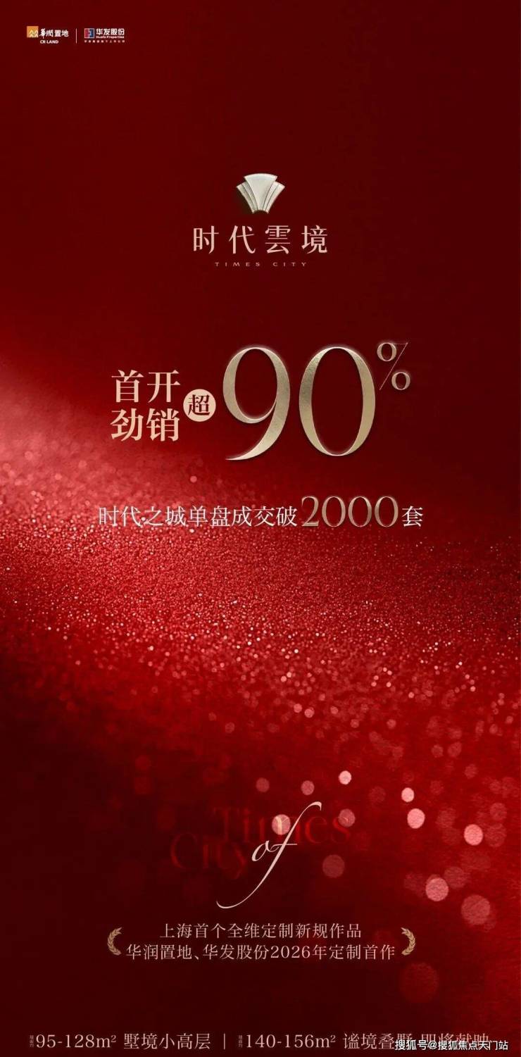 2026年上海楼市的“金三”热潮,被一个名字点燃——时代雲境。由品牌房企华润置地与华发股份联袂匠造的时代之城三期作品,开盘即上演“燃爆”戏码,去化率突破90%,以压倒性的市场热度,稳坐上海外环新房“第一红盘”宝座。这不仅是单次开盘的成功,更是其所在超级IP“时代之城”累计销售超2000套传奇业绩的延续与印证,彰显了其作为市场顶流的绝对统治力。