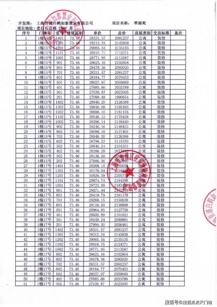 项目一房一价表