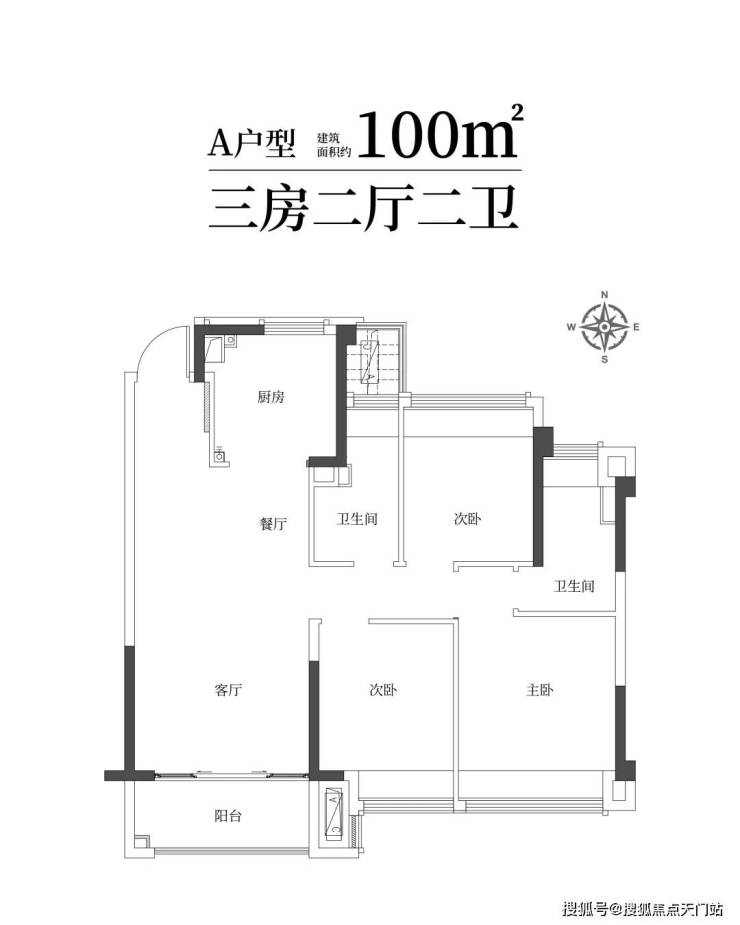 建筑面积约88㎡精雅三房一卫,三口之家理想