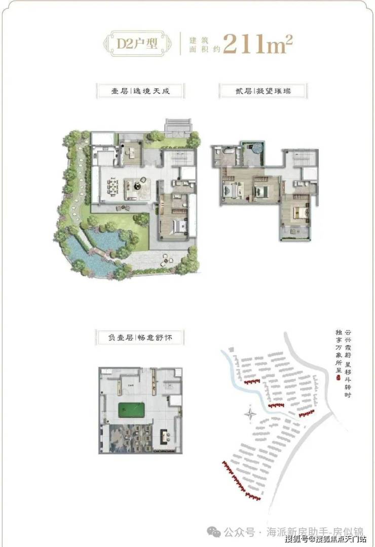 从户型设计上看:建面约138-188㎡联排与建面约211-214㎡院墅产品,庭前绿地,大面宽,地上仅2层,真正的低密宽境别墅,产品力断层式领先。