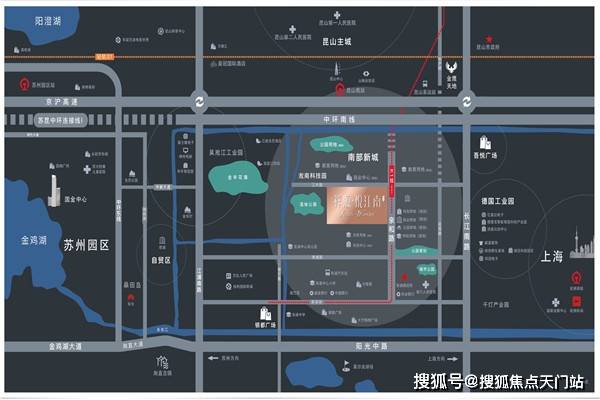 项目处于昆山南部新城,规划中的K1轻轨旁,近享受吾悦广场、银都广场两大购物中心,直面城市级商业规划;