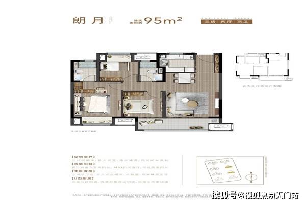 6号楼(18F):朗月户型三室两厅两卫95平