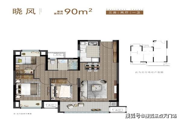 中间套:晓风户型三室两厅一卫90平