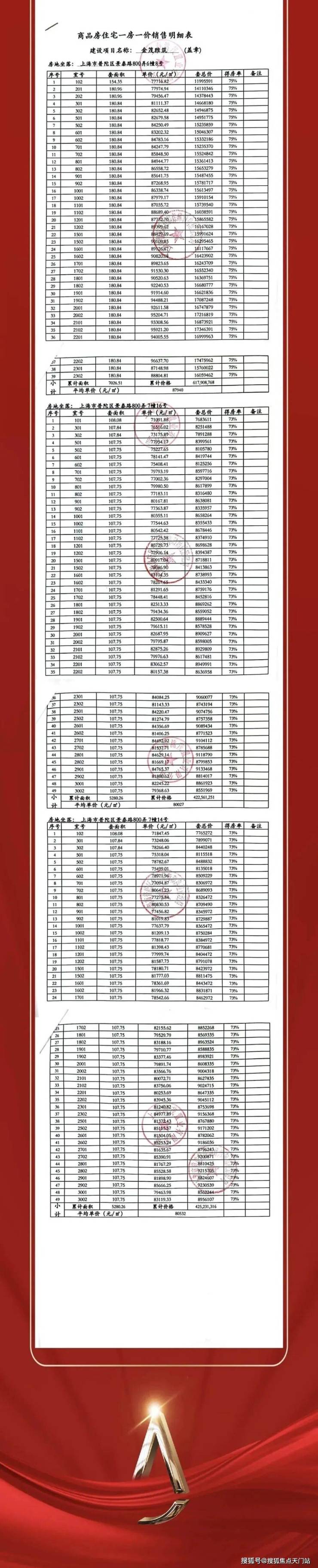 普陀金茂府一房一价表: