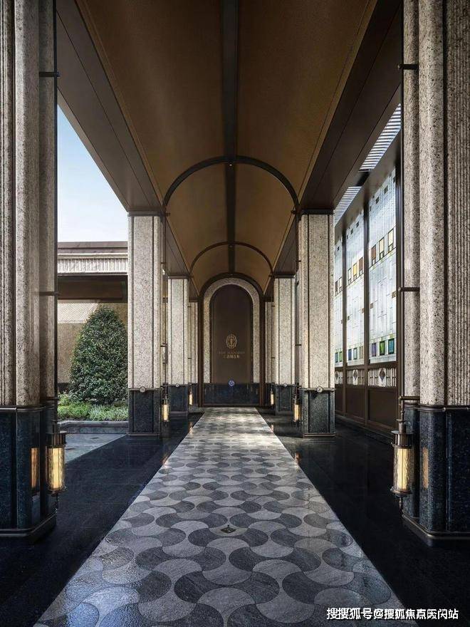 约30米的艺术连廊,借鉴PRADA荣宅多立克柱式以及和平饭店的拱形廊道,摩登海派,魅力十足:建发海阅首府售楼处电话: 400-118-3159✔✔✔