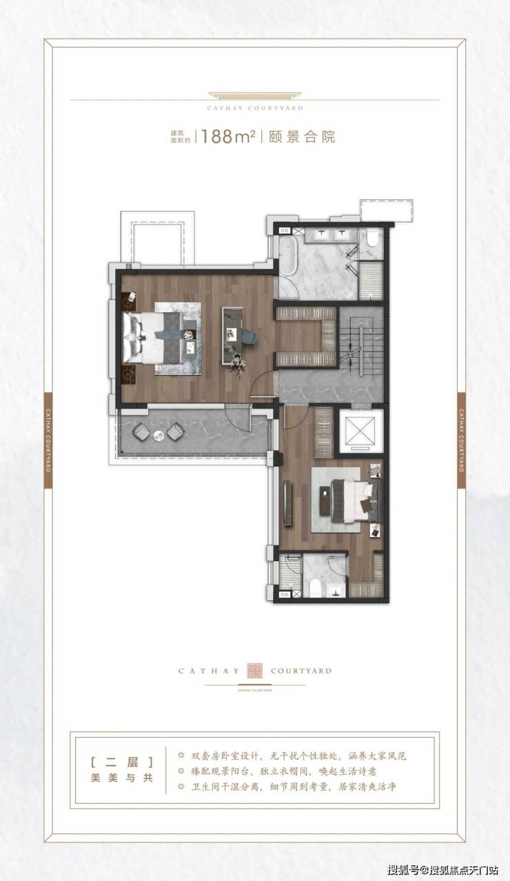 二层至三层豪华套间,功能齐全,每一间卧室都拥有足够尺度,配置独立浴室、衣帽间等功能分区,房间外延景观露台,满足了高阶人物对于空间感的需求。即使二孩家庭成员也各有各的空间,互不影响。