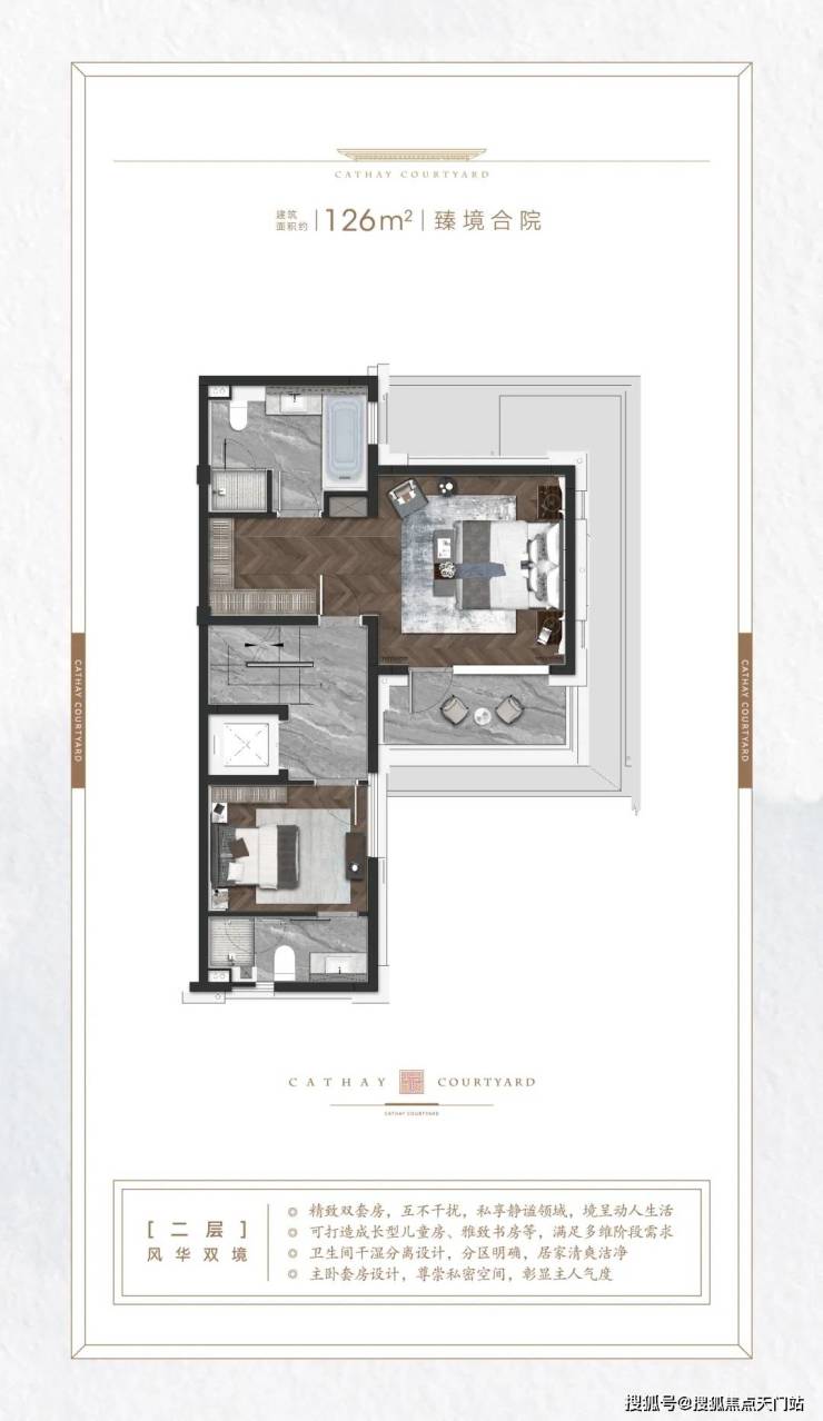 【泰禾·海上院子】设计之初便以传世宅邸为蓝图,立足房间布局、阔绰尺度、楼层分隔、功能分区等考量,匠造符合几代人需求的人性化空间。“垂直分区、代际分层”,在一层一世界的境域里,让三代人甚至四代人,有适度的边界感、彼此的舒适圈,既能和谐共处,又能自在独处。