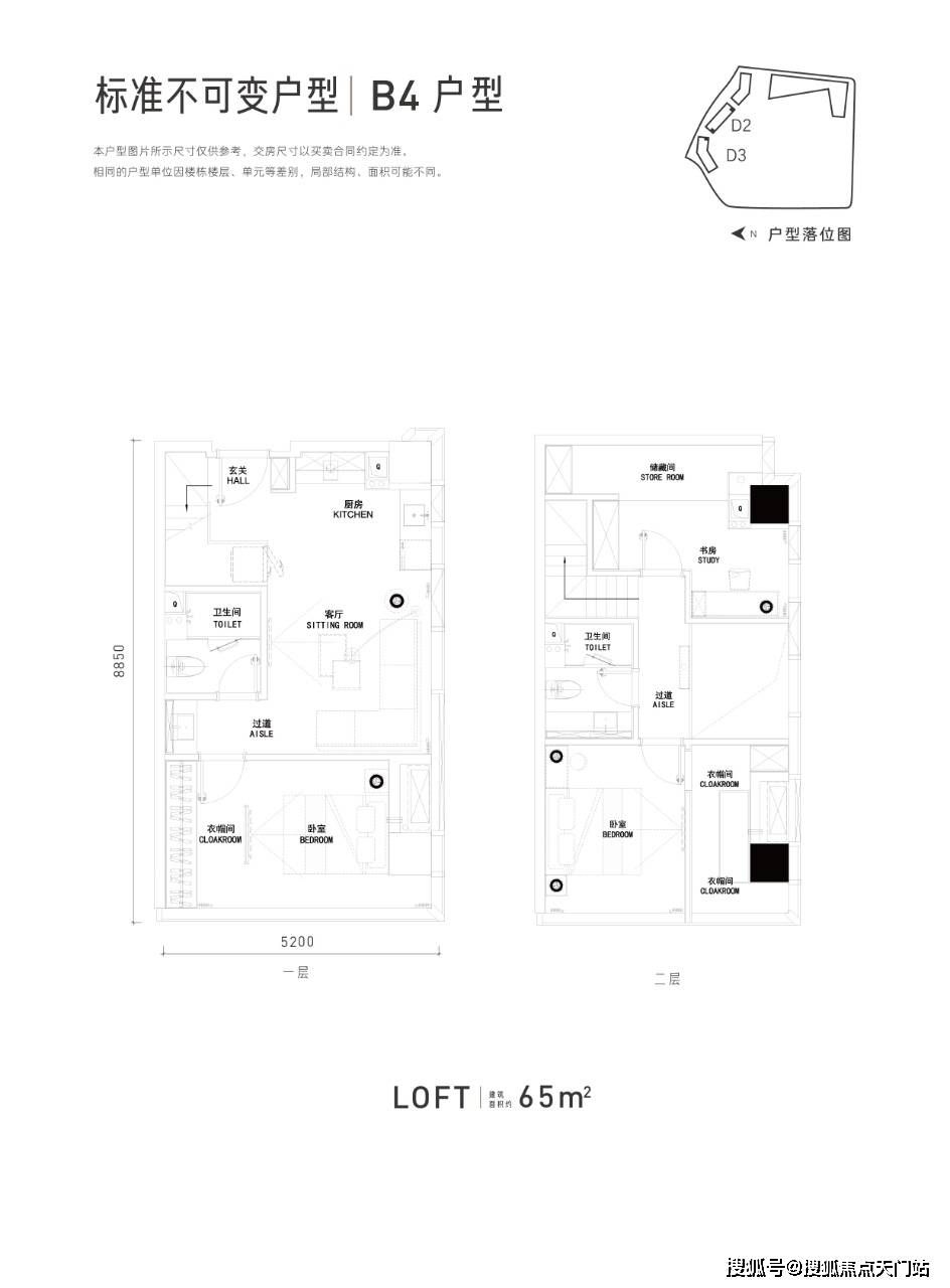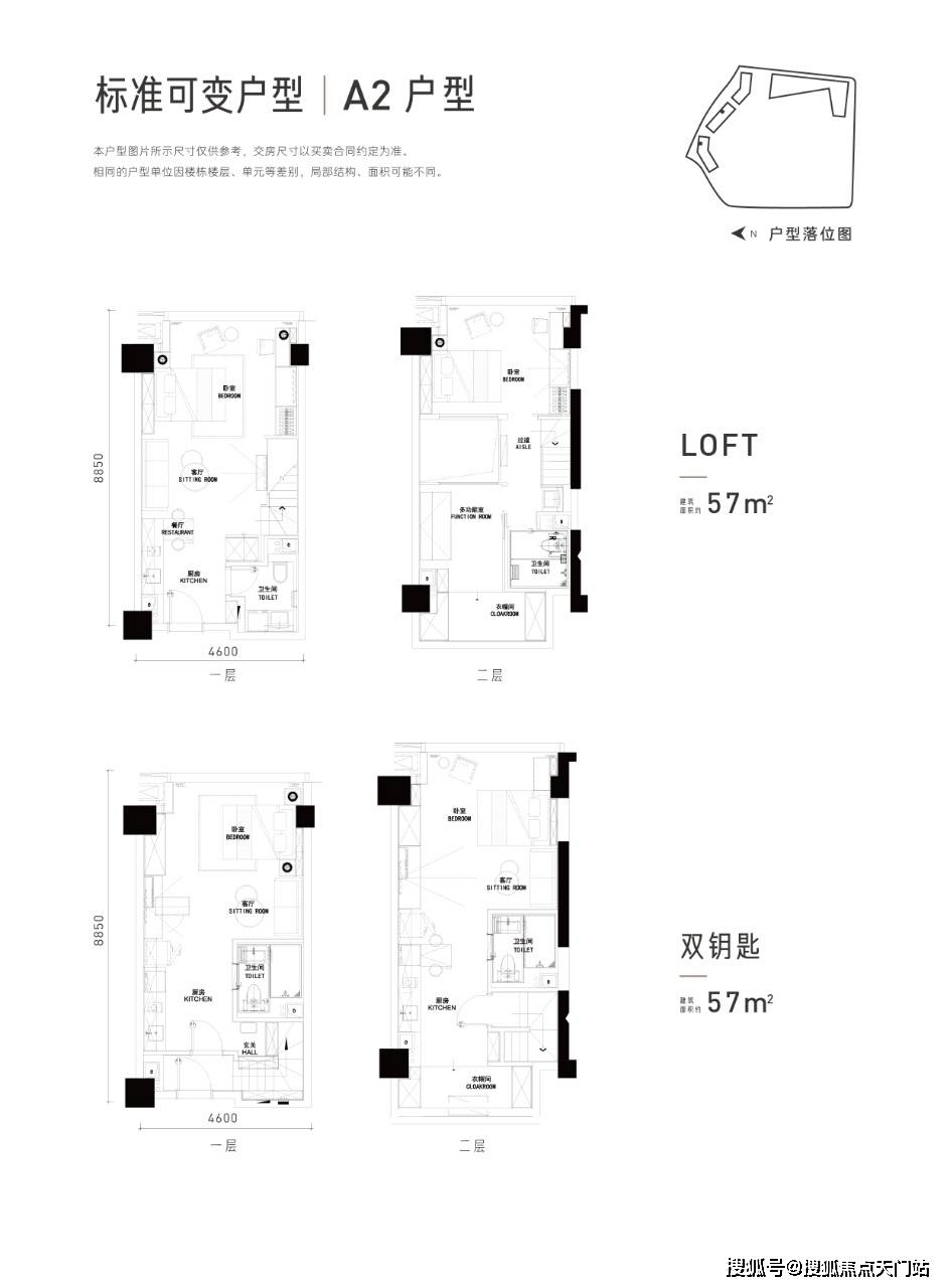 3.层高4.79米,买一层享两层,双钥匙户型设计,双倍收益,户型方正,面积段47-65方,满足投资自住双向需求。