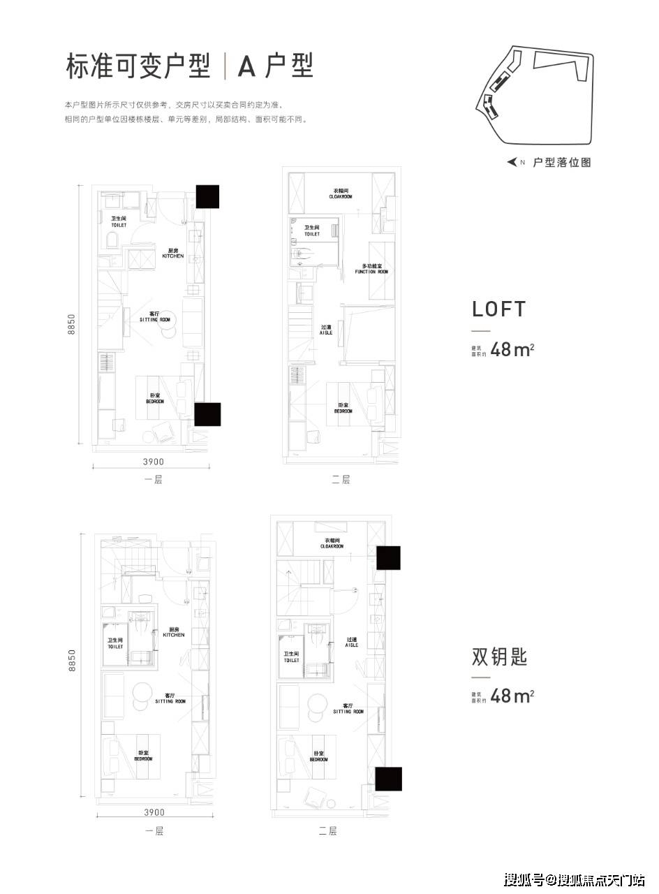 【户型】:45㎡~95㎡平层公寓,48㎡-65㎡单、双钥匙