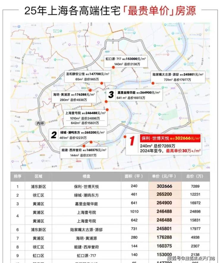·2025年上海目前各高端住宅「最贵单价」房源30.27万/㎡(3-22-1902,数据来源近两年开盘项目一房一价表)