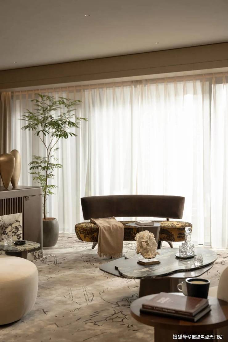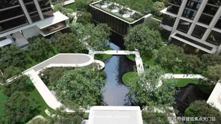 “回归之境”以3500㎡下沉水苑为核心,汇聚会客、泳池、茶室等多功能空间,形成仪式感十足的社区舞台。
