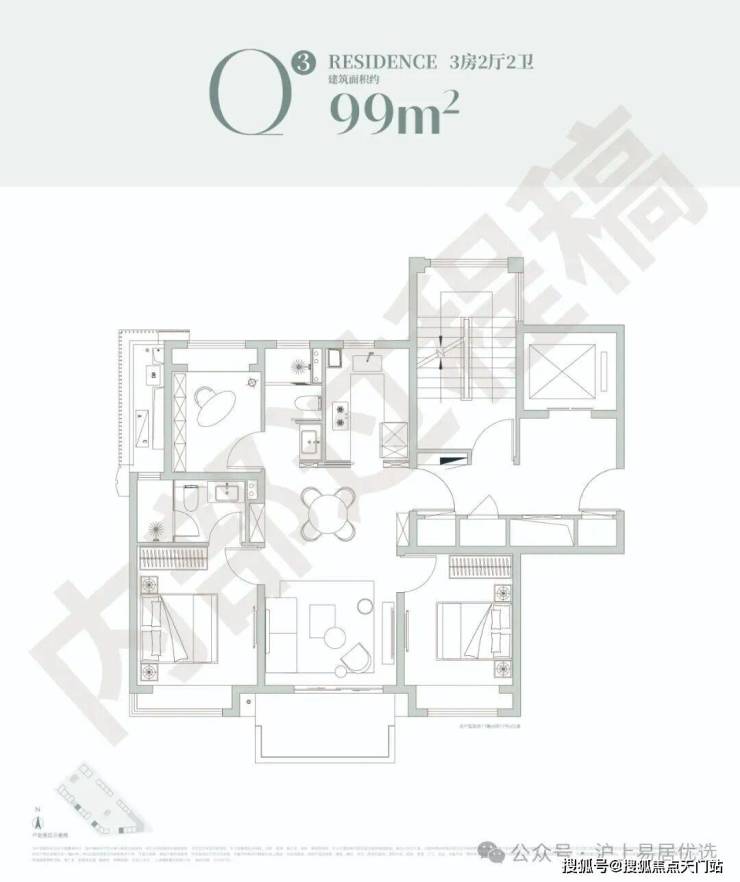 三开间朝南的飞机户型,搭配独立景观阳台,既保证了各卧室的私密性,又实现了优秀的南北通透效果,以舒适门槛即可抢占滨江价值高地,绝对是手慢无的热门之选。