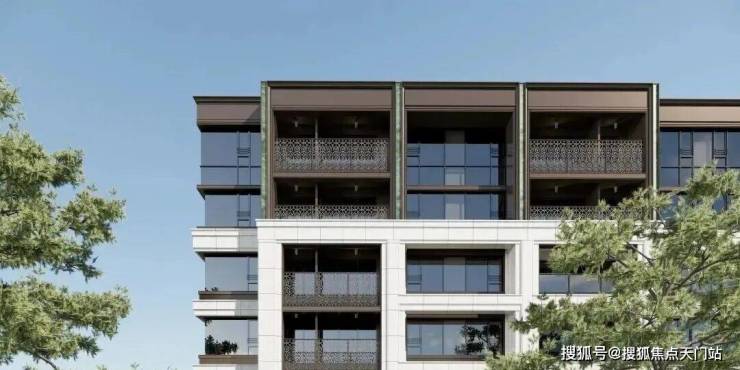 洋房立面以大面积干挂石材结合金属饰面为主基调,营造出现代典雅的整体风格。
