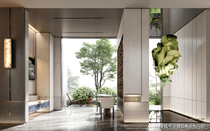 4、下沉式庭院, 通过乌桕树、溪流构建一处安静的栖息之境,业主可在这里尽情放空。