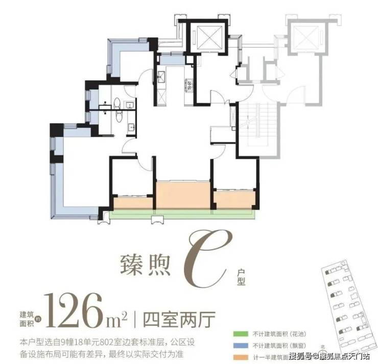 大致计算,98㎡双阳台+花池,可多享约7.8㎡,相当于送了约52万;108㎡三阳台+花池,可多享约12.3㎡,即约82万!
