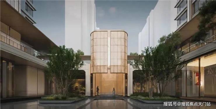 建筑与美学:融贯东方审美与现代简约的立面美学,立面采用精致铝线条(局部涂料)与现代质感玻璃打造,勾勒优雅轻盈的城市封面