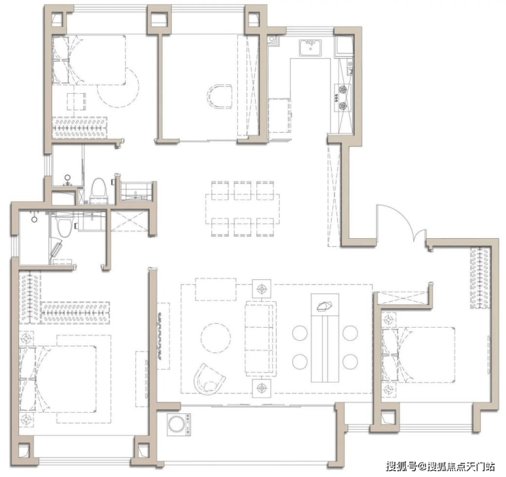 户型方面,项目主推建面约100-145㎡3-4房,联动价6.5万/㎡!划重点无连廊的设计,这一点在同级别的新房中十分少见,这会让室内的实际使用率更高,并且采光也更加优秀。最新户型图如下:
