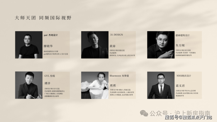 聚集享誉业界的团队——gad杰地设计、31.DESIGN、GVL怡境、德森建筑设计、NNS纳沃设计、Bluemoon布鲁盟