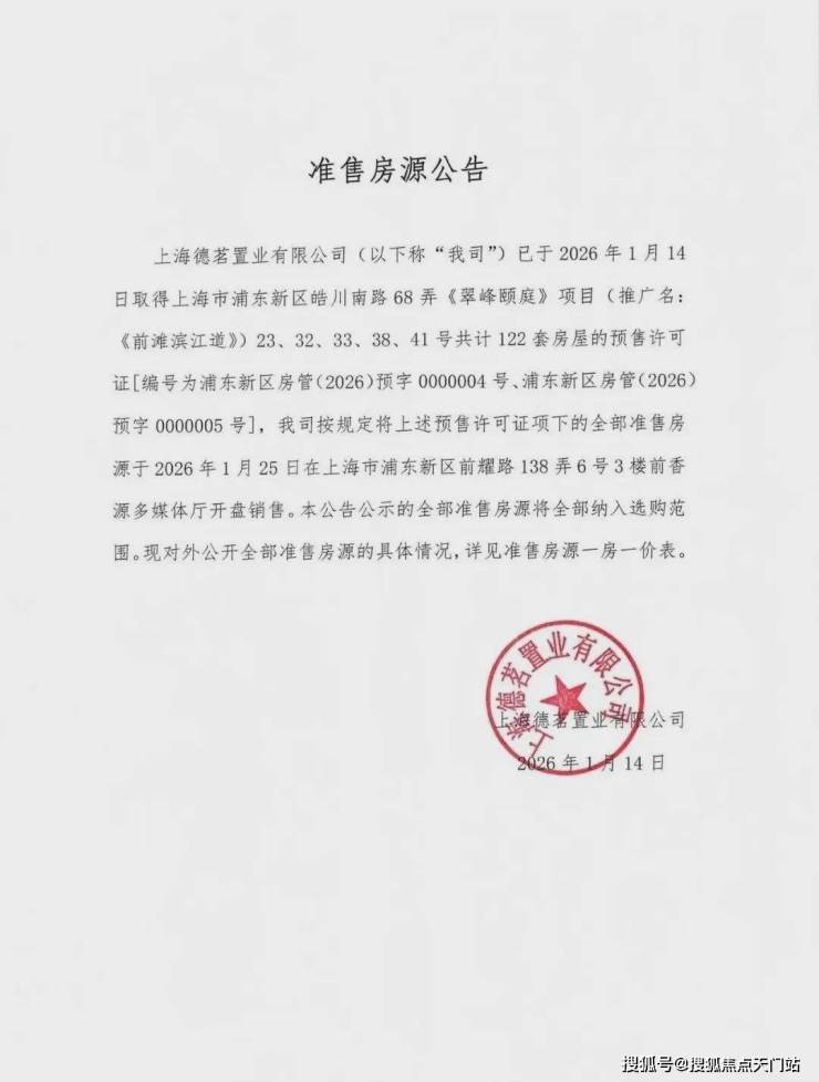 前滩滨江上新「前滩滨江道」首推152套约89-152㎡3-4房;均价116541元/㎡!