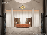 而在上层,则采用了上海海鸥丽晶酒店同款立面石材——巴西金;大门的门扇部位以高超的陶瓷镶嵌铜丝工艺,配纯手工掐丝珐琅贴片的精制拼贴。