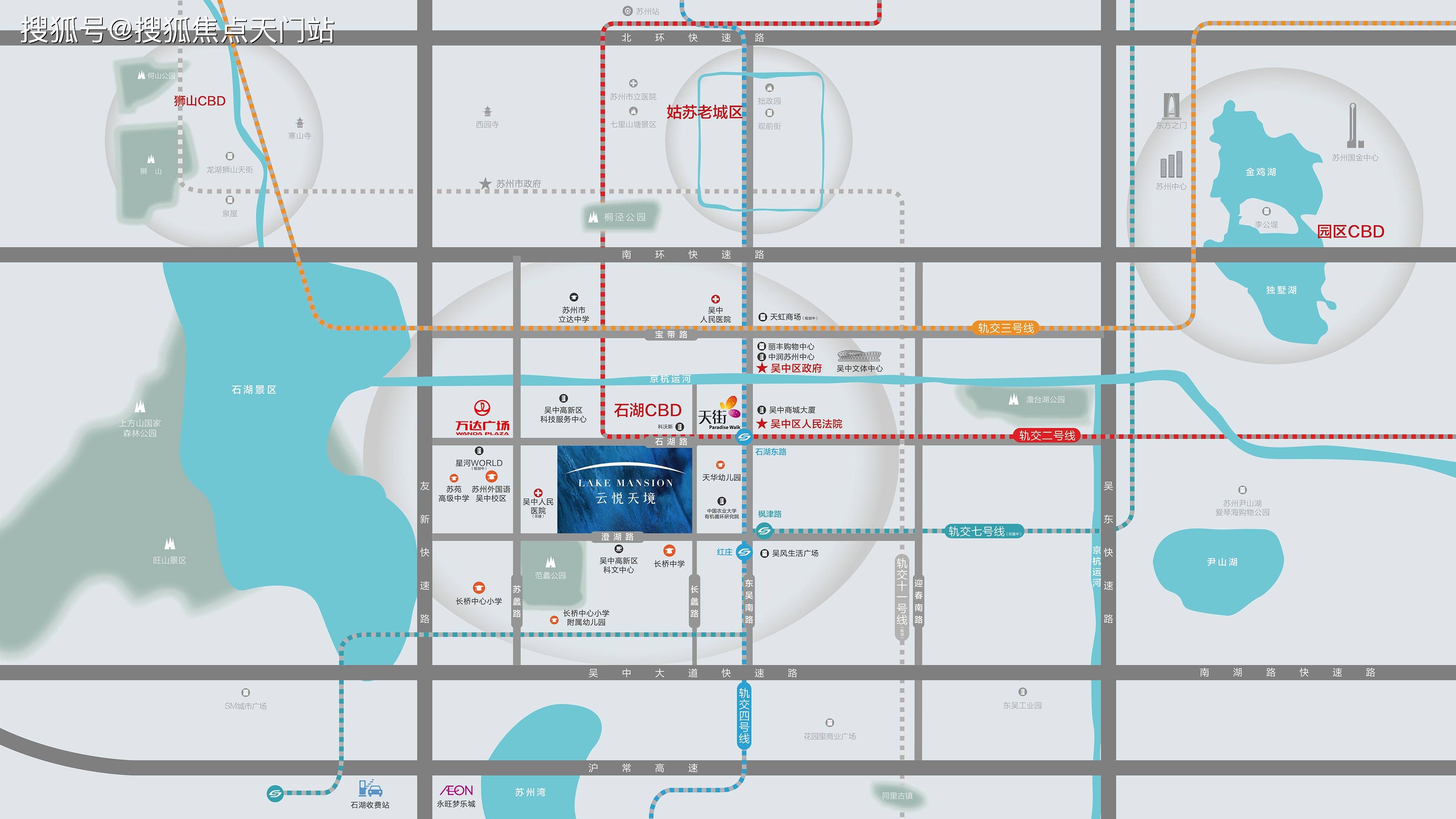 地铁:地铁2号线、4号线、3号线、在建7号线,规划11号线,五轨交汇,快速通勤苏州各城市板块;