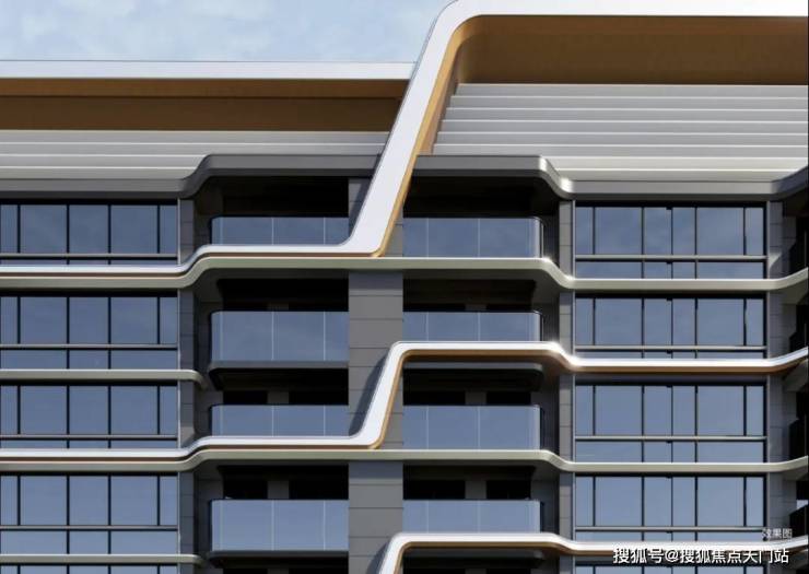 其次,翎翠滨江的立面更是惊艳,以曲线感线条打造了一个超流体的建筑,再加上 多材质的铝板 用料,妥妥的杨浦滨江新美学天际线。