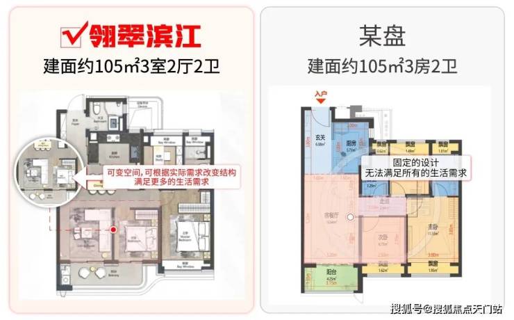 翎翠滨江不同于普通住宅,项目不仅仅可以作为一个宽绰的正3房户型。