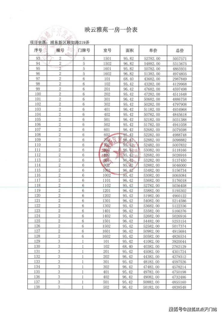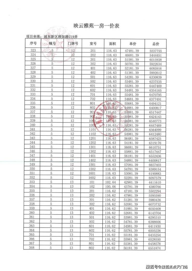 项目一房一价表▼