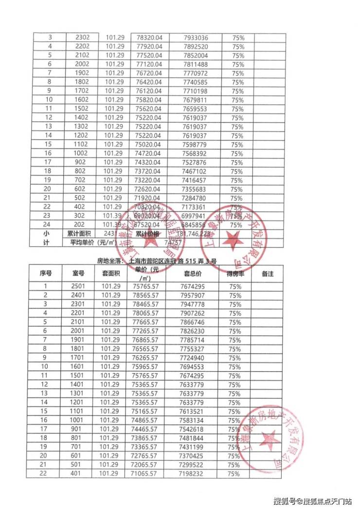 一房一价表