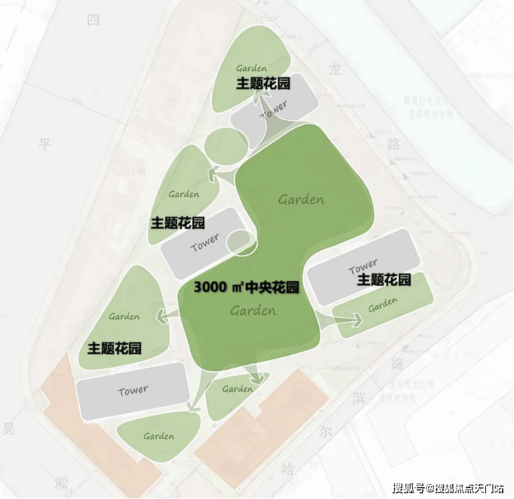 营销关键词 南北通透、人车分流 90%+得房率、三阳台、风雨连廊 空中花园、负公摊、垂直森林
