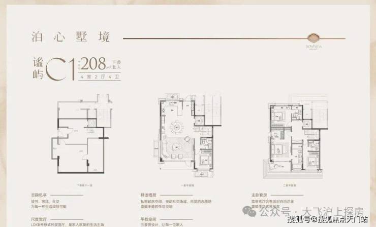再来看建面约208㎡的下叠: