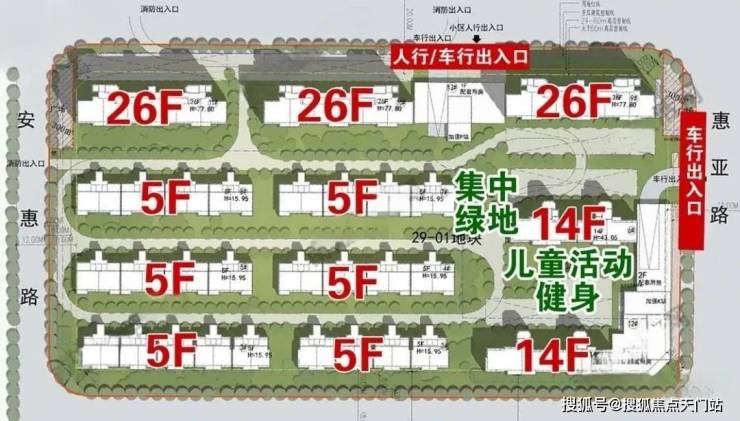 29-01地块原设计方案,将北面人行/车行的出入口向西侧的安惠路方向进行了调整,并疑似将北面的主入口调整到了惠亚路一侧。