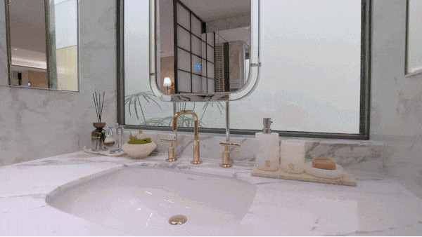 卫生间采用 杜拉维特台盆、汉斯格雅龙头 , 更有 定制科勒龙头 , 堪称全明星阵容的感官盛宴。
