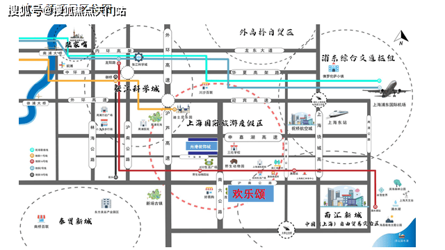 欢乐颂项目地理位置优越在上海国际旅游度假区内,度假区的周围有张江科学城,外高桥自贸区、浦东综合交通枢纽、奉贤新城南汇新城。
