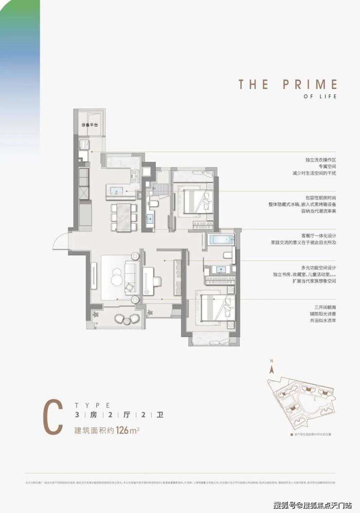 C户型 ——约126㎡:三房两厅两卫