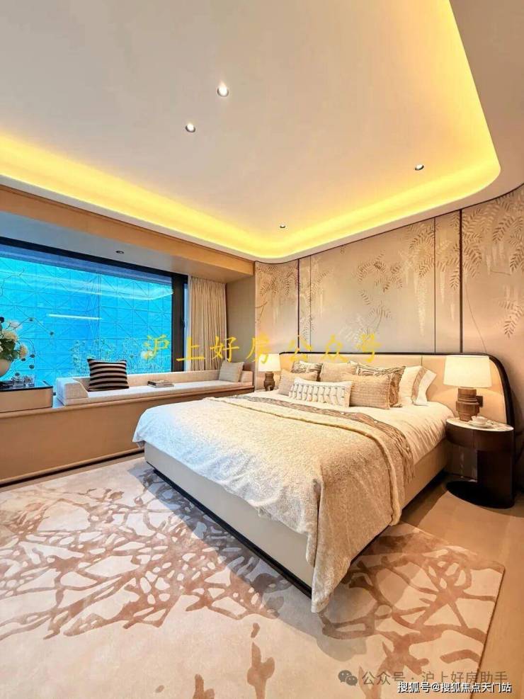 主卧拥有270度环幕飘窗,视野和采光优越,配备了高奢卫生间,空间感、尊崇感拉到顶格。