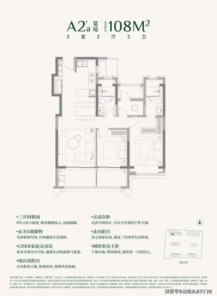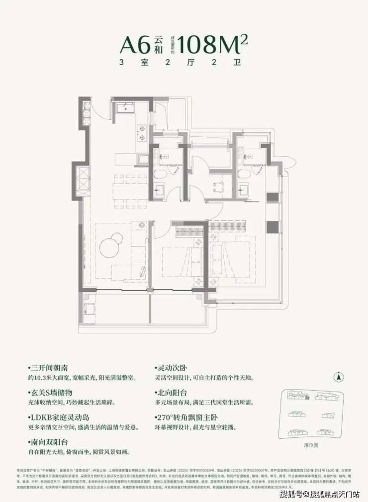 建面约108㎡3房的三阳台面积就高达约13㎡。(阳台仅附赠一半面积)