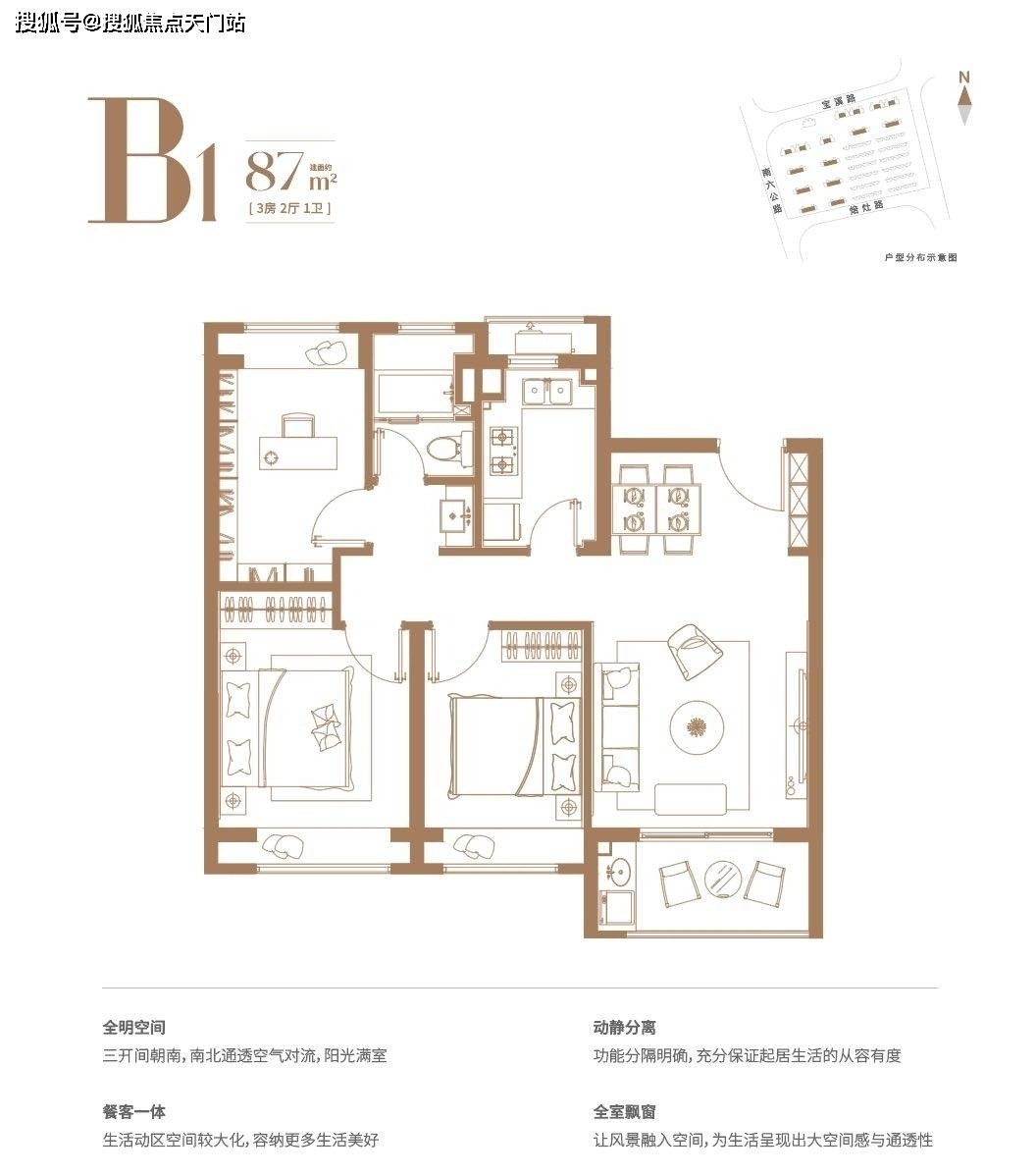 约87平三房两厅一卫